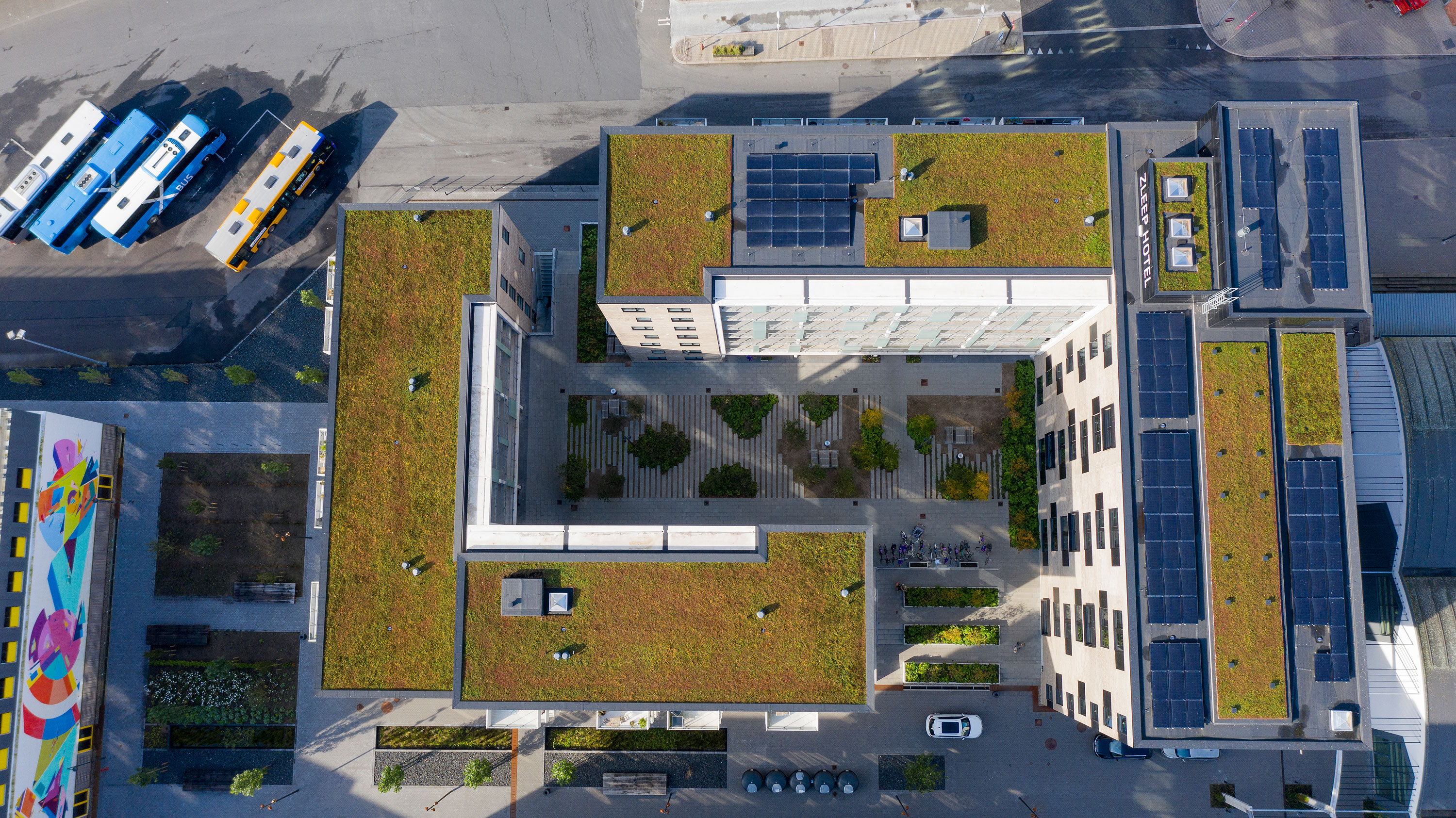 Phønix Tag Nordjylland har udført tagdækning, tagterrasser samt sedumtagene på bygningerne.