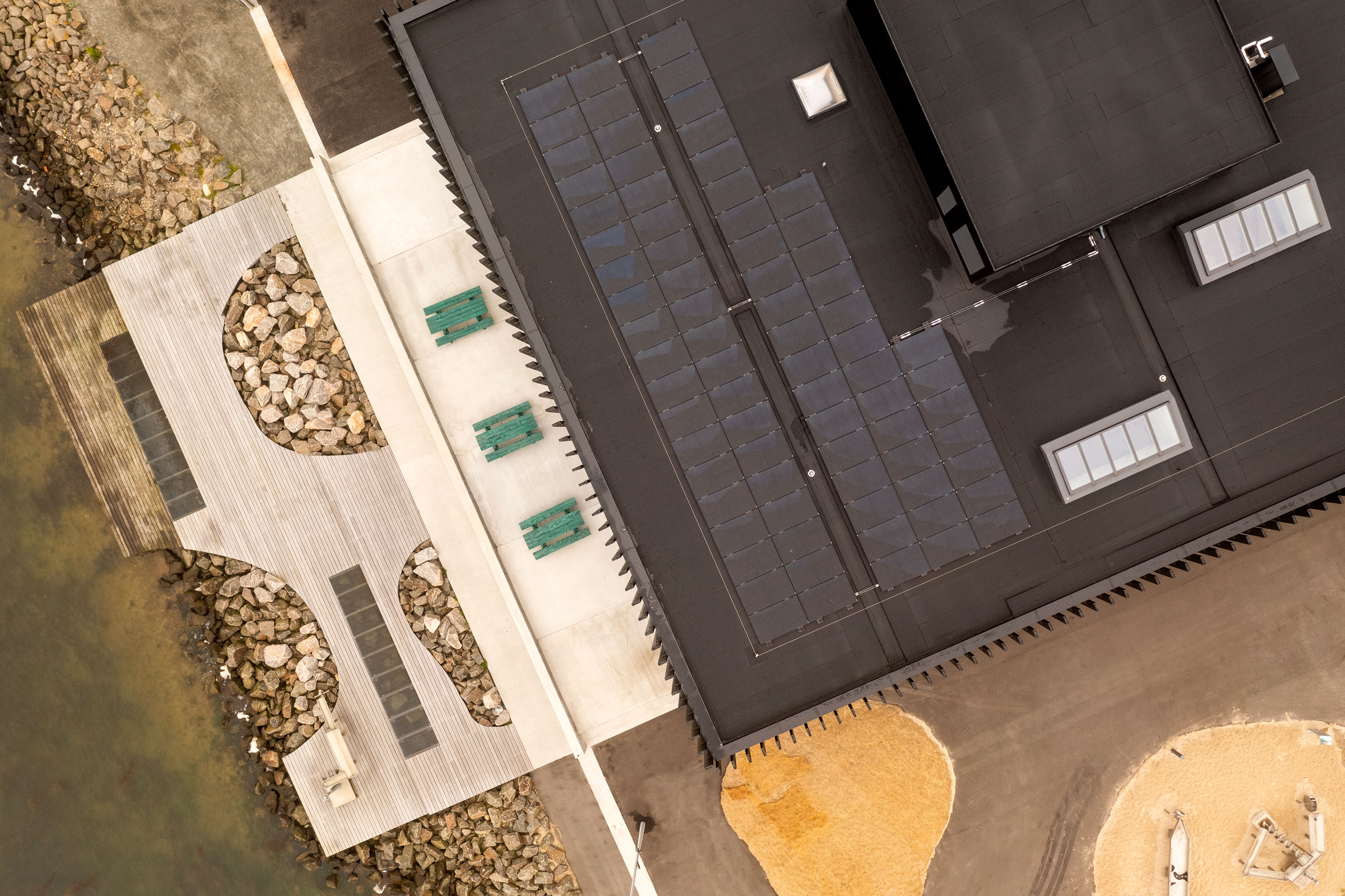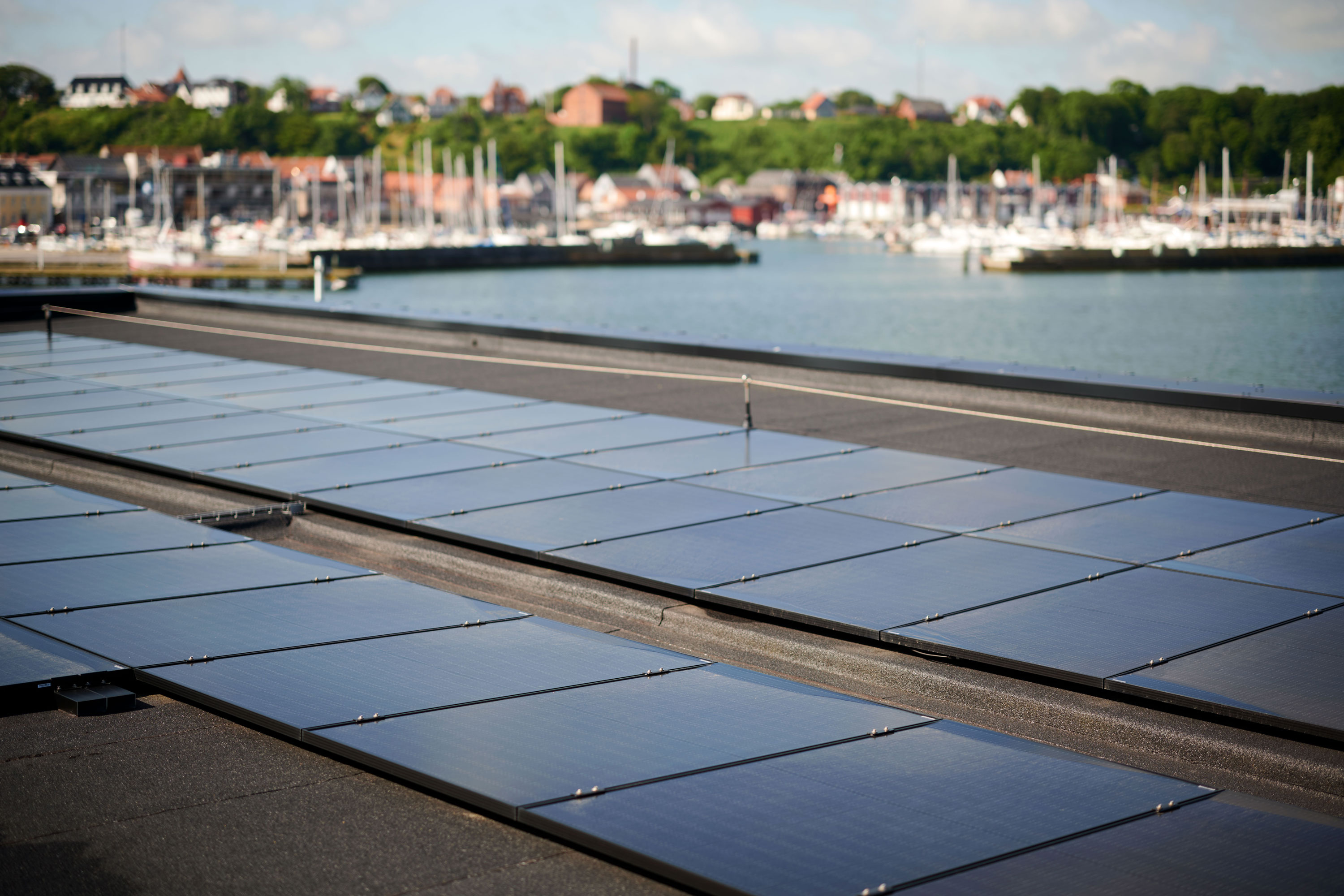 Kim Slavensky fremhæver i øvrigt, at den helt plane montage også reducerer vindbelastningen af panelerne betragteligt. En faktor, der med Klimatoriums placering på den forblæste havnefront i Lemvig vil få stor betydning for panelernes vedligeholdelse og levetid.